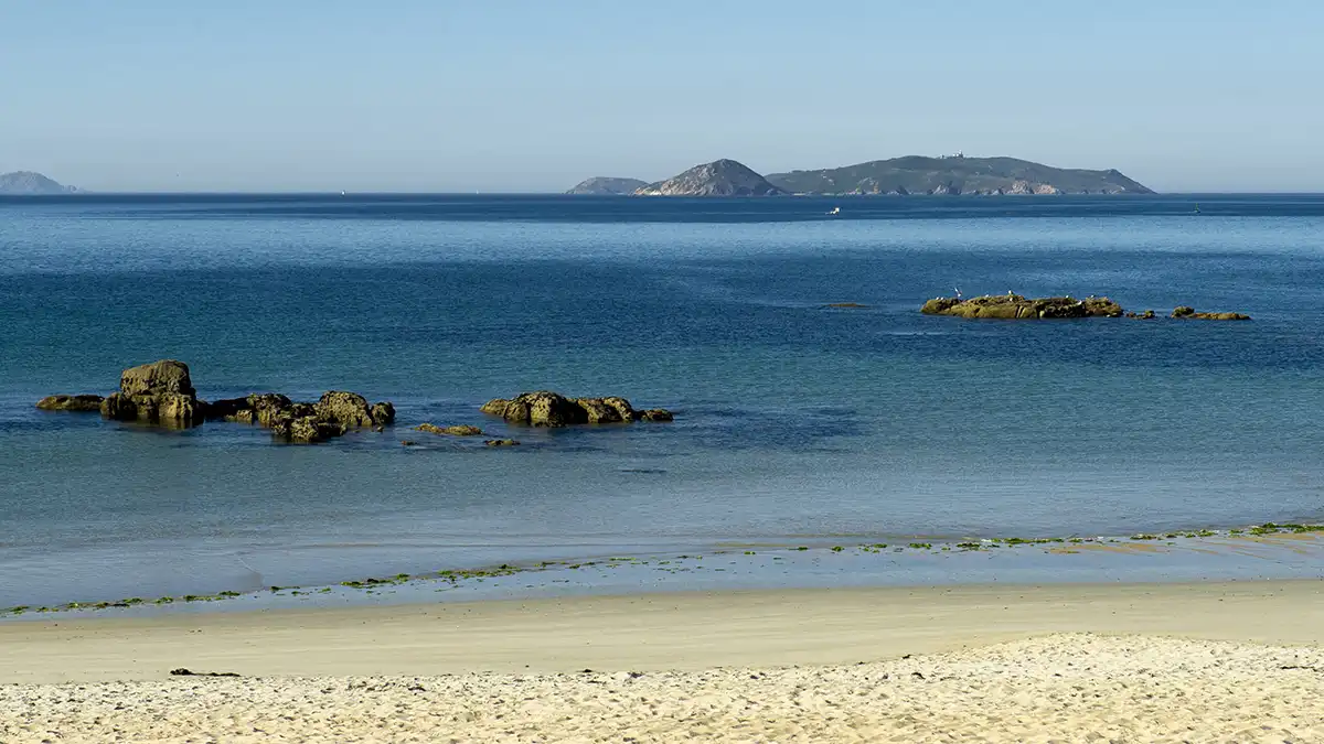 Tambiรฉn conocida como Covadelo, esta playa en la isla de A Toxa tiene forma recta y arena blanca y fina.
