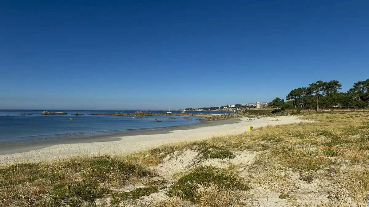 Playa rectilรญnea de arena fina y conchas y de aguas tranquilas, se sitรบa en un entorno semiurbano rodeada por una masa forestal.