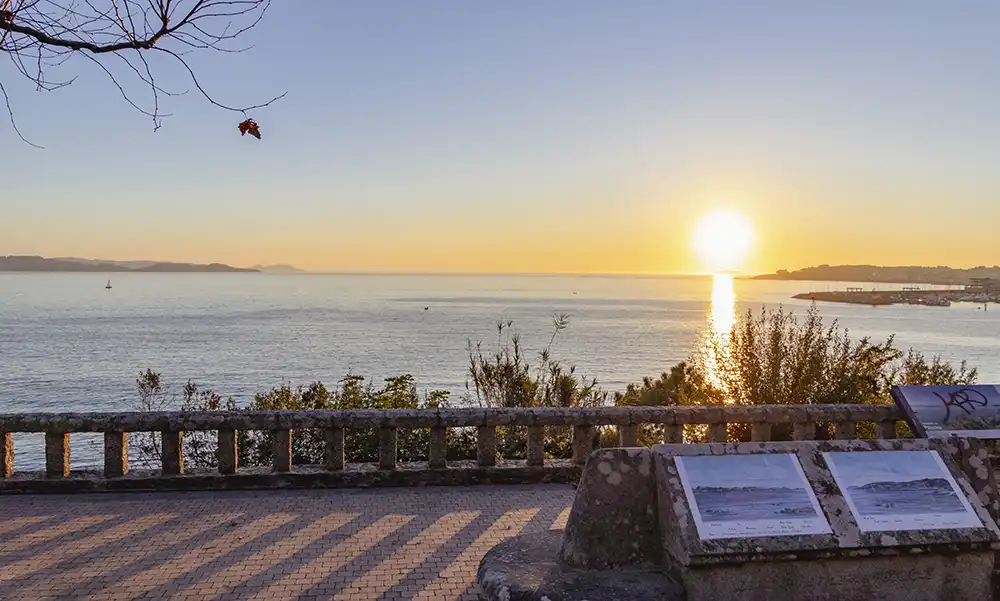 Este mirador ofrece una vista a la Ría de Pontevedra. A la derecha tenemos el Puerto Deportivo Juan Carlos I de Sanxenxo, que reúne todas las condiciones para ser considerado uno de los mejores puertos deportivos de la península. Más al fondo se distingue el Parque Punta Vicaño, situado entre la playa de Silgar (Sanxenxo) y la playa de Baltar (Portonovo). Zona arbolada con un parque infantil y al final un mirador que también cuenta con magníficas vistas a la Ría de Pontevedra.